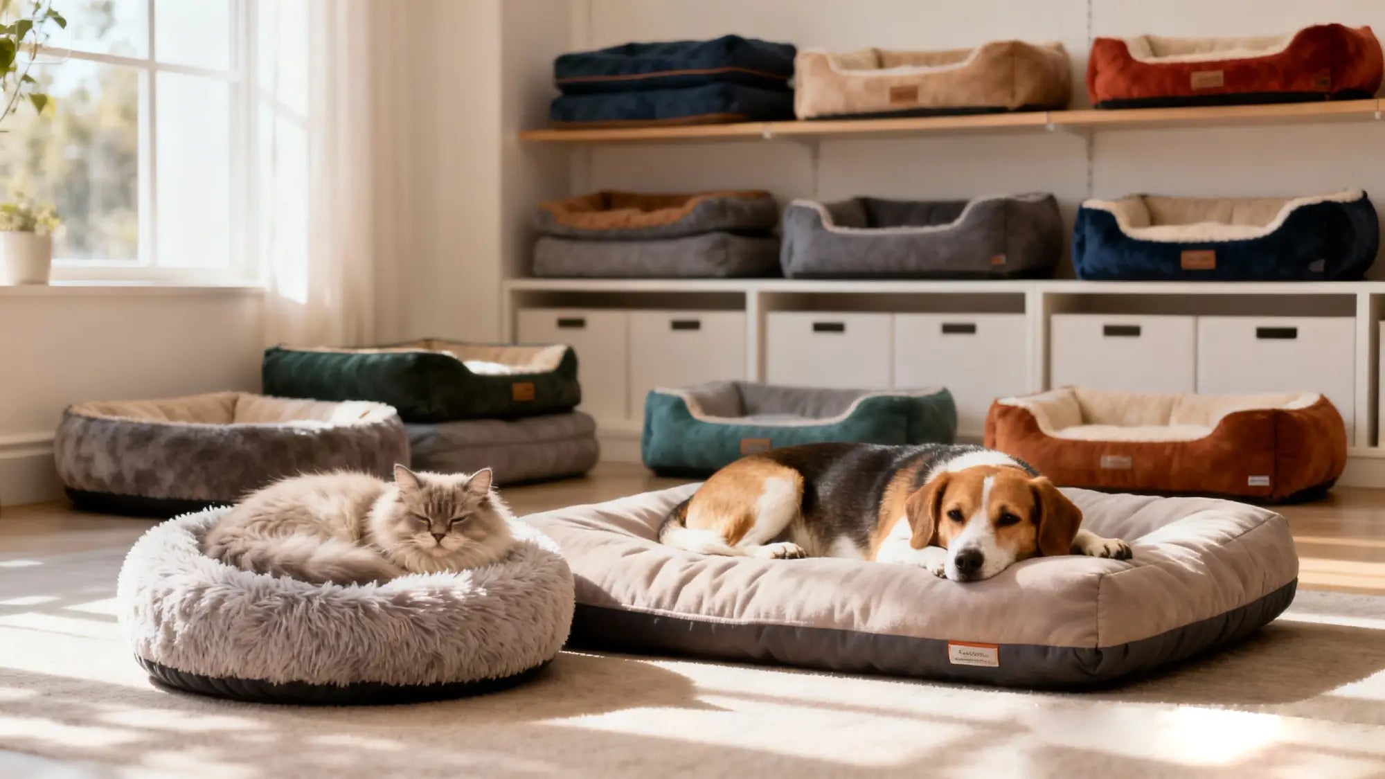 Dog and cat beds built for daily naps, cuddle time, and all-day lounging - soft, supportive, and cozy.